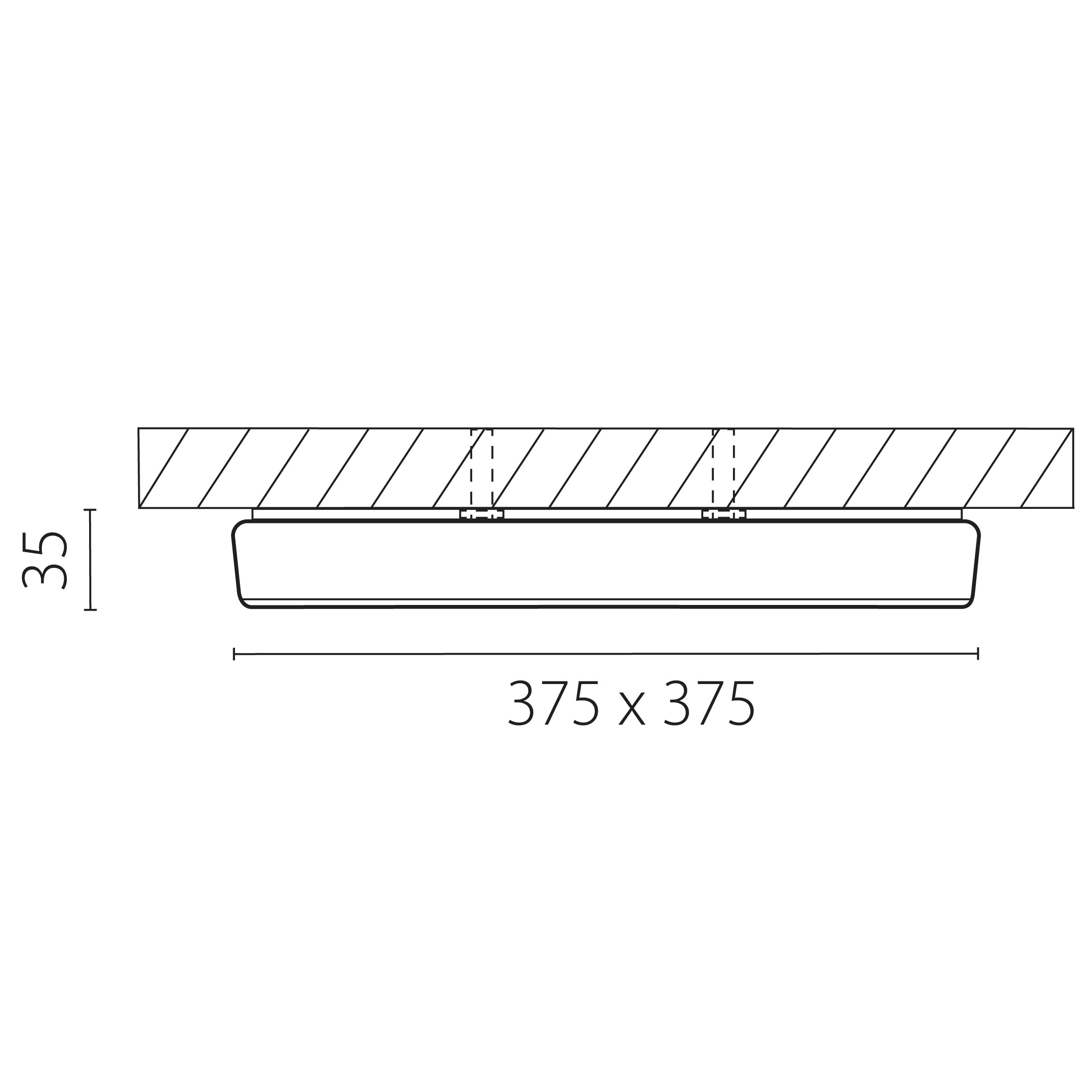 Крепление: а 250; l+w 350; h15 ; Внешние габариты :L+W 375; H35 ; Материал - основание/плафон: металл / пластик; Цвет-основание/плафон: белый; Лампа: LED 26W, Световой поток: 2500LM; Трансформатор входит в комплект 3000K;